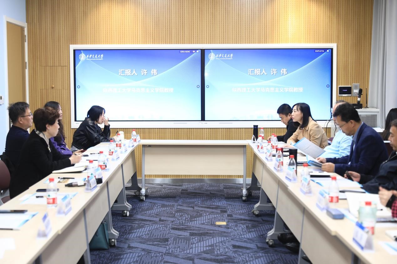 教授许伟汇报陕西高校思政“金课”《西迁精神的时代传承》课程建设。课程以“乘车证”引发对西迁的思考,进一步围绕“是什么”“为什么”“怎么做”展开对西迁精神的论述,传承西迁精神。张云龙教授主持;各教授、专家积极展开讨论。张津波教授、绅士漫画