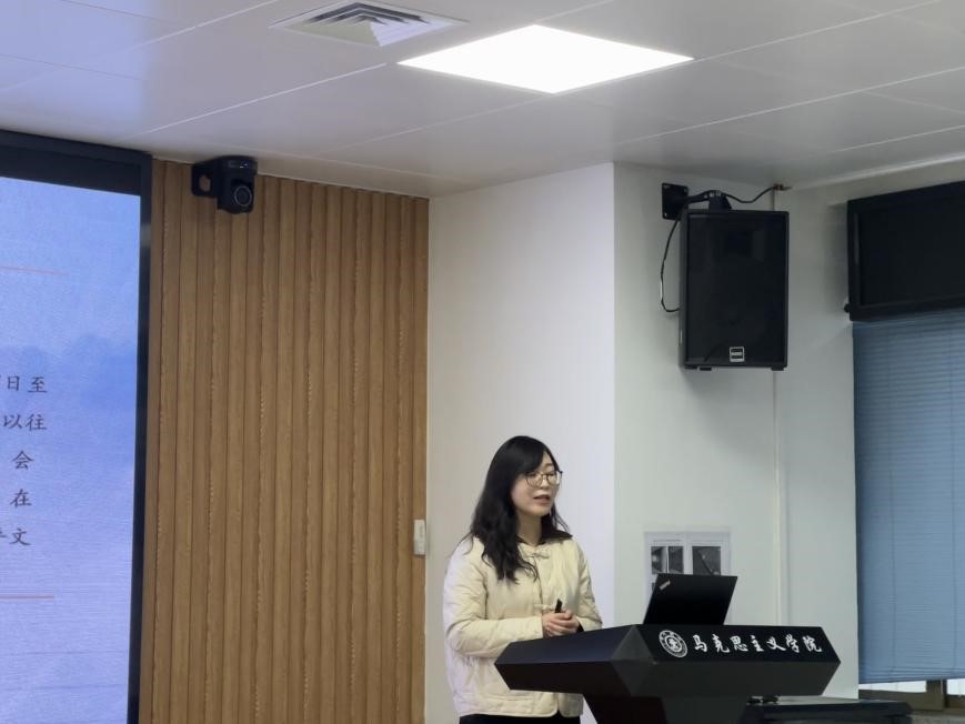 曹芳老师用革命青年不远万里奔赴延安的史实引入,突出强调了文化的力量和重要性。在此基础上,她指出可以从理论、历史、实践逻辑三个角度理解习近平文化思想的形成逻辑,她提到,习近平文化思想的产生体现了不断推动马克思主义中国化时代化的要求;中华优秀传统文化创造性转化、创新性发展的要求和持续推进社会主义文化强国建设的要求。此外,曹芳老师深入又具体地讲解了习近平文化思想的内在理路,她指出习近平文化思想是党的创新理论成果的重要组成部分,在以中国式现代化全面推进中华民族伟大复兴的历程中有重要地位,同时也传递着中国共产党人致力于文化发展的坚定态度和巨大决心。最后,曹芳老师从守正创新、人民至上、系统思维、自信自立、胸怀天下五个角度高度凝练了习近平文化思想的鲜明特征,并强调习近平文化思想是明体达用,体用贯通的思想体系,是党领导文化建设实践经验的理论总结,也是新时代文化建设的路线图和任务书,具有重大的理论价值与实践价值。