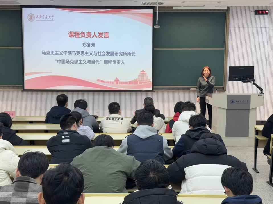 郑冬芳指出,本次活动实现“中国马克思主义与当代”课程26个教学班全员参与,取得了丰硕成果。通过PPT作品,能够看到同学们在自主学习和自我教育上的思考和成长。思政课的核心要义不仅是知识的传授,更是态度的培养。希望同学们始终保持认真的学习态度,并将其转化为积极的人生态度,以实现更大的个人成就。