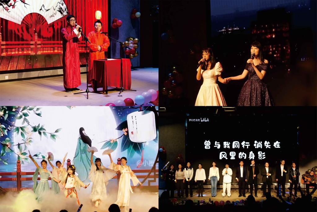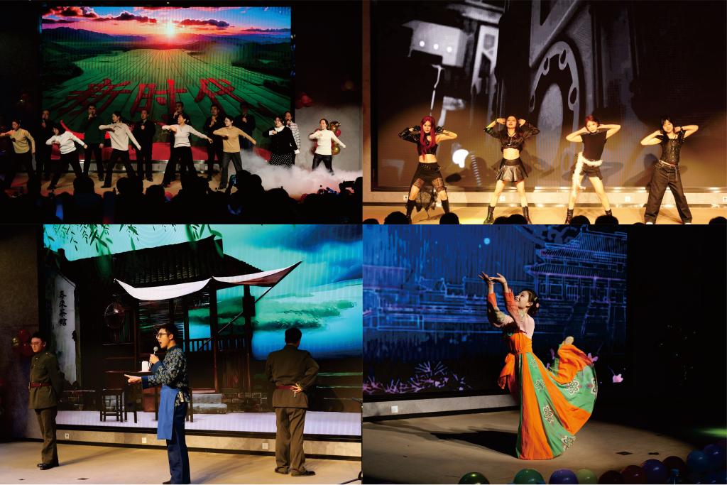 丰年瑞景,岁月流金。联欢会由活力四射的舞蹈《Whiplash》开场,动人的歌曲《你不知道的事》拉开第一篇章的帷幕,独舞《唐印》随后登场,舞者身姿婀娜,舞步轻盈,仿佛诉说着千年之前的故事。戏曲《沙家浜·智斗》凭借精湛的演技和专业的配合赢得了台下观众的阵阵喝彩。由学院老师带来的歌曲《我们走在大路上》和《My Love》传递出积极向上的能量和对未来的美好憧憬。之后的成语接龙游戏成功将现场的气氛推向高潮,在欢声笑语中迎来第二篇章。