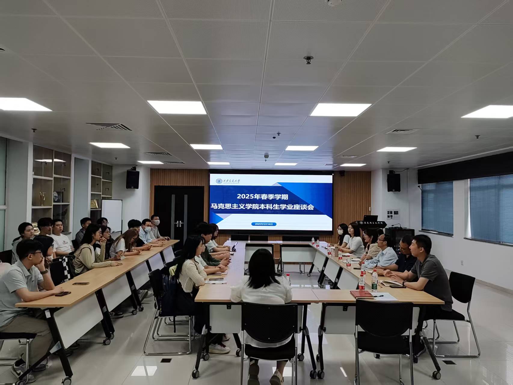 5月14日下午,学院在主E-505召开了2025春季学期马克思主义理论专业本科生学业座谈会。授课教师代表田建军、宋希斌,崇实书院院务副主任王美玲,班主任代表李婧、段朱清、郝一博,教学秘书张文、辛越,以及各年级学生代表二十余人参加座谈会,座谈会由学院院长助理李天姿主持。