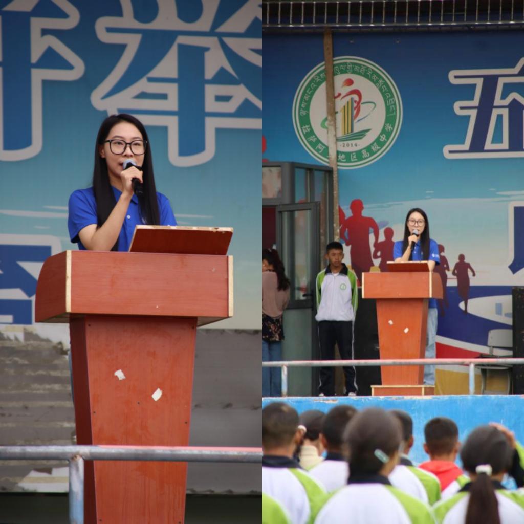 2025年8月25日上午,拉阿高中举行新学期首次升旗仪式。赴藏队队员与全校师生齐聚操场,注视国旗冉冉升起。赴藏队队员路思远代表团队在升旗仪式上发言,她衷心感谢学校的热情接待,并对团队未来主要开展工作和“西迁精神”的历史底蕴与时代价值进行了介绍。