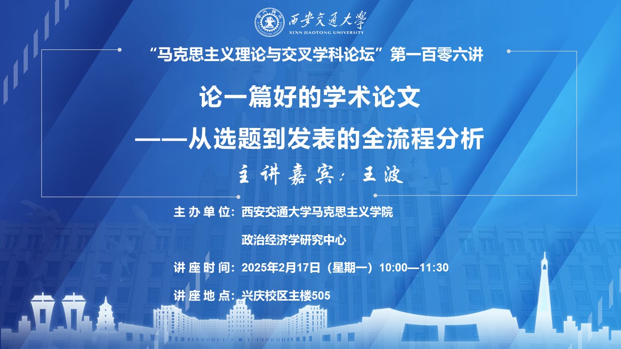 讲座题目:论一篇好的学术论文——从选题到发表的全流程分析