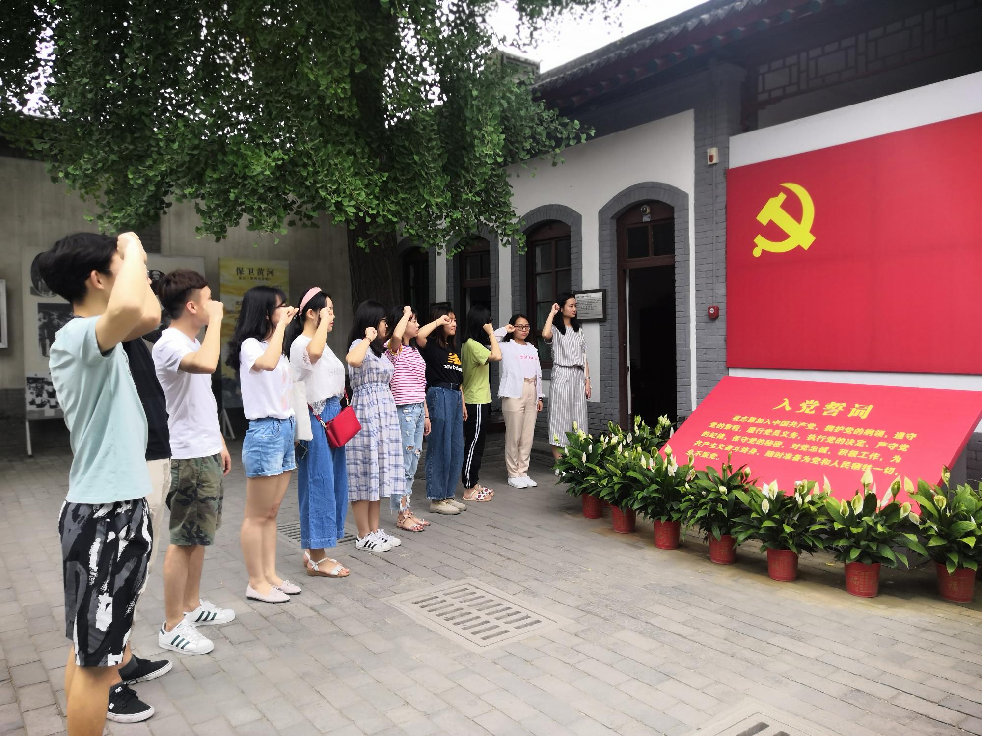 在纪念馆的后院,鲜红色的党旗下是每名党员都熟记于心的入党誓词。受浓烈的革命气氛感染,走到这里,我们的支部成员自发重温入党誓词,紧握右拳,面向党旗庄严宣誓。铮铮誓言,彰显的是支部党员不辱使命、不忘初心的奋斗与坚持,表达的是为党的事业奋斗终身的决心。