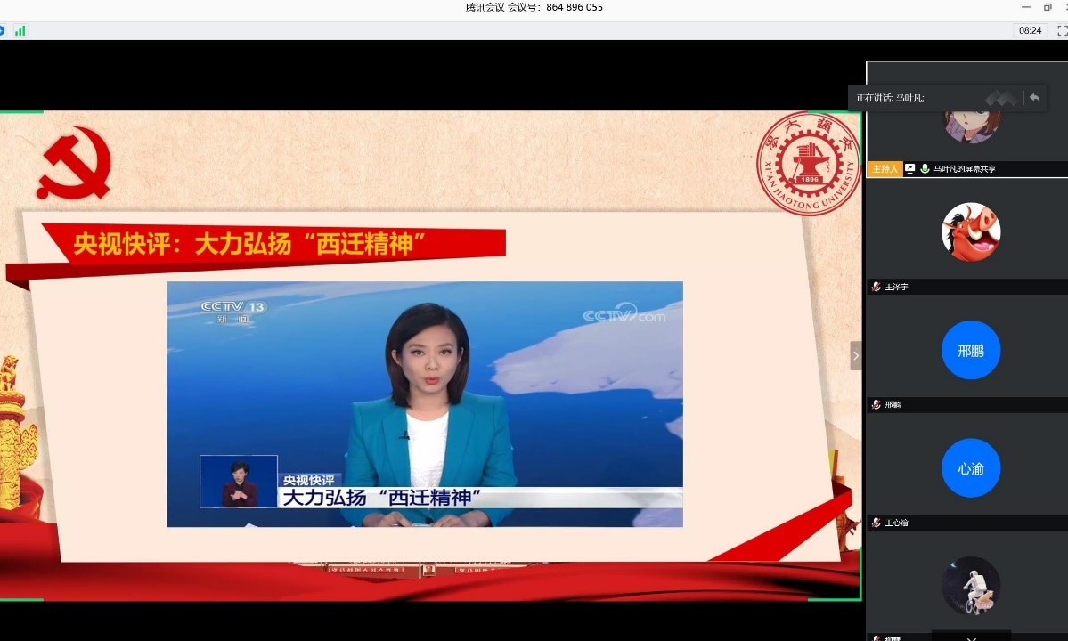 马叶凡带领支部通过观看视频等方式集体学习习近平总书记本次莅校视察,接见交大西迁老教授,有关“西迁精神”的重要讲话精神。