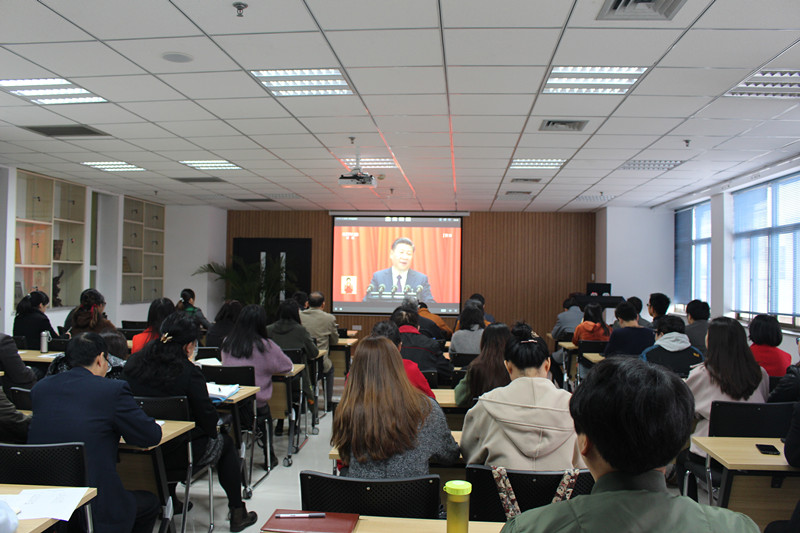 分党委组织全院师生通过电视、网络等媒体平台集体观看现场直播,认真聆听习近平总书记所作的十九大报告。在学院505报告厅,学院党政班子成员、分党委委员、各系所领导、各支部书记与广大师生代表共同观看十九大开幕会。