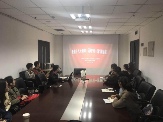 宣传委员谢淑敏带领大家认真学习了十九大报告,学习内容主要从行动指南、初心使命、奋斗目标、两个阶段、改革开放、历史使命、历史方位和主要矛盾八个方面概括了党的十九大报告涵盖的理论要点。同时,谢淑敏同志向与会同志介绍了高等教育“双一流”建设的基本概况,使大家对我国实现高等教育内涵式发展有了更深层次的了解。