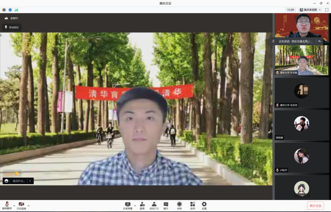 清华大学博士生讲师团金牌讲师、清华大学抗疫先进个人周逸美作题为《青年人的使命与担当--基于湖北籍学生在疫情中的所见所感》的宣讲。她认为,这次疫情防控阻击战对每一位中国人而言都是极为严峻的挑战。我们青年一代亦是在抗疫战中贡献着自己的力量,与民族同呼吸,与国家共命运。现在西安疫情牵动着所有人的心,青年学子同样在用自己的力量传递温暖、汇聚力量。周逸美同学结合切身经历分享防疫抗疫的所见所感、所思所想,结合西安疫情的最新动态,讲述疫情防控斗争中“90后”“00后”青年人的使命与担当。