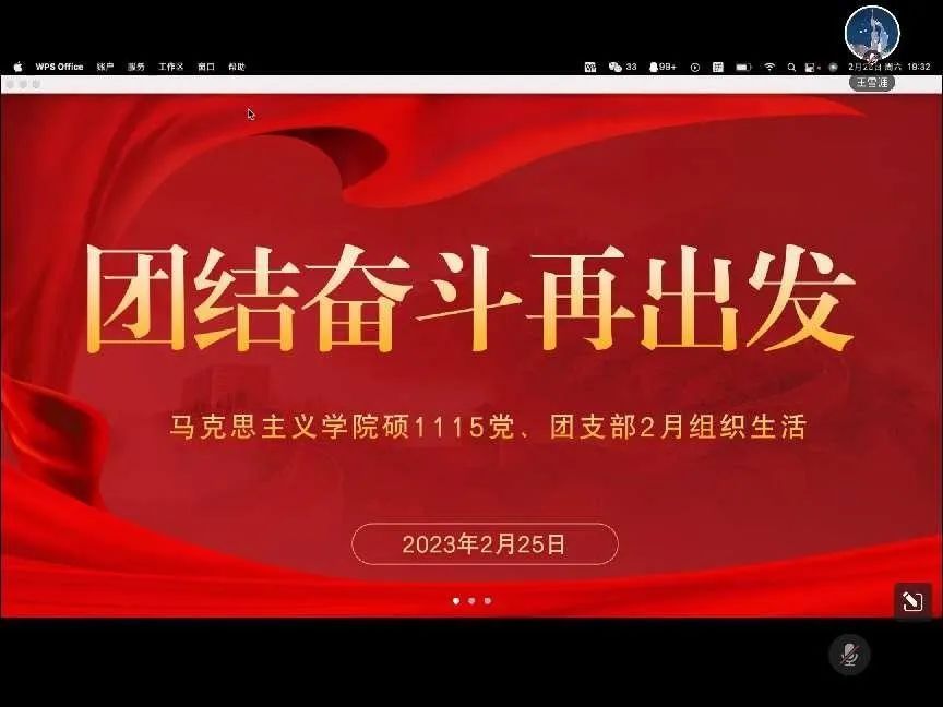 为深入学习宣传贯彻党的二十大精神,加强党、团支部组织建设,2月25日晚,硕1115党、团支部在线上召开专题组织生活会。本次会议以“团结奋斗再出发”为主题,由硕1115党支部组织委员田雨馨主持,硕1115党、团支部全体成员共同参与。