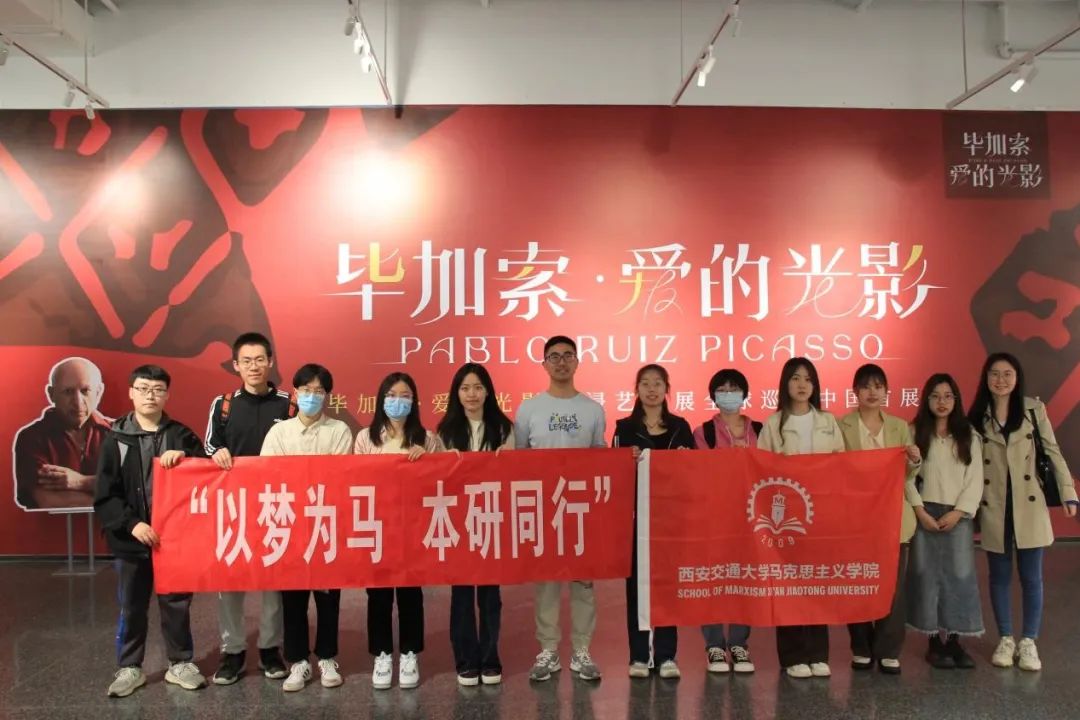 今天有幸参加了“以梦为马,本研同行”社会实践活动,和许多优秀的小伙伴一起赴西安美术馆参观《毕加索·爱的光影》沉浸艺术展,感觉获益匪浅。艺术展全面呈现了毕加索一生的著名作品,其中抽象的艺术线条、荒诞的表现手法、细腻的情感输出,让我们体会到了毕加索绘画的艺术魅力。在讲解老师深入浅出的分析和引导下,我们在惊叹毕加索作品的超前性的同时,也提高了我们的艺术审美和情操,不禁对这位艺术大师感到尊崇。此次活动具有高度的美育意义和价值,在促进本研交流学习的同时,通过感受经典艺术的氛围提升了同学们的个人审美情趣。