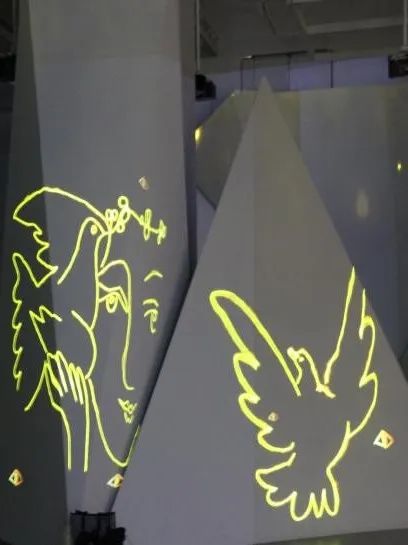 本硕学子在艺术展中共同回顾了他不平凡的一生,欣赏了他画作中奇特而前卫的线条与色彩。《毕加索·爱的光影》展现了一场灵动大秀,以虚拟现实、身临其境的沉浸式体验,传递着毕加索爱的真谛,既是一场视觉盛宴,更是在用作品讲述着一个伟大艺术家的人生历程以及对世界的贡献。作为一名法国共产党员,入党这件事改变了所有共产主义国家对他的认识也成为共产主义巨大魅力的证明。战争与和平是光影秀的重要主题,表达了毕加索强烈的反战思想。当光在黑暗中一点点闪现,变化成光线组成一只只和平鸽,大家心中油然而生对和平与希望的向往。毕加索的立体透视画法独树一帜,他对于绘画的独到理解正是创新精神的展现,他曾说:“整个世界展现在我们面前,期待着我们去创造,而不是去重复”,作为新时代青年马克思主义者,也应当有勇于创新、大胆求变的创新意识。