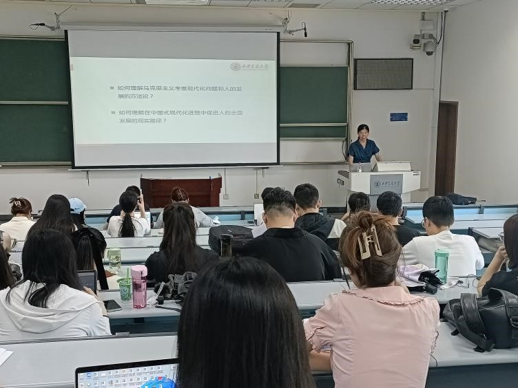 党委书记苏玉波教授走进硕2125、硕1115、硕1117党支部讲授“中国式现代化的本质蕴涵——基于人的自由而全面的发展”主题党课,各支部全体党员参加学习。