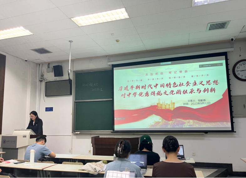 习近平新时代中国特色社会主义思想蕴含着丰富的中华优秀传统文化基因,在多个方面推动了中华优秀传统文化的创新性发展。张彬倩本次分享主要围绕习近平新时代中国特色社会主义思想对“天下为公”的大同思想、“民惟邦本”的民本思想、“天人合一”的生态智慧以及“协和万邦”的处世原则等中华优秀传统文化基因的借鉴展开,指出习近平新时代中国特色社会主义思想不仅充分彰显中华优秀传统文化所蕴含的永不褪色的时代价值和精神特质,也凸显了 21 世纪中国马克思主义所内蕴的深厚的文化底蕴和鲜明的时代特色。她表示,我们要更加深入学习习近平新时代中国特色社会主义思想,切实把习近平新时代中国特色社会主义思想转化为坚定理想和锤炼党性的强大力量。
