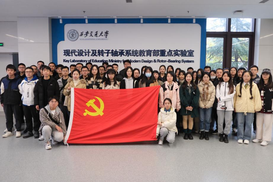 党日活动第一阶段,支部成员前往“现代设计及转子轴承系统教育部重点实验室”进行参观学习。