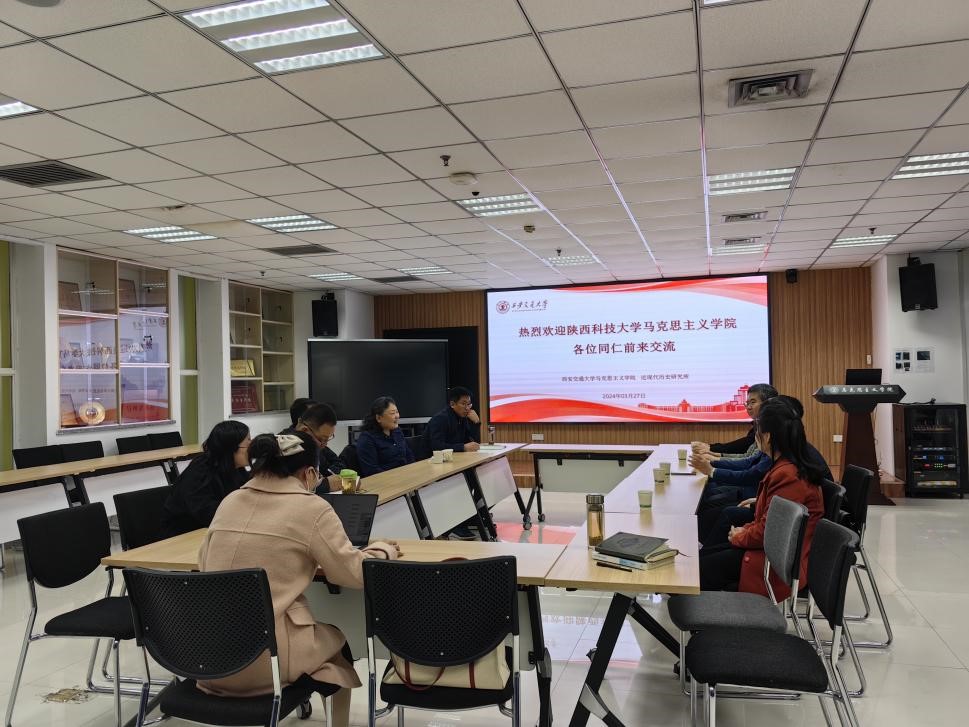 座谈会上,双方针对教师队伍建设、思政课程建设和教学科研情况进行了深入交流。