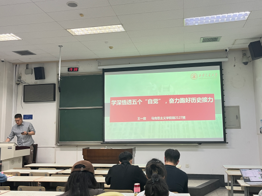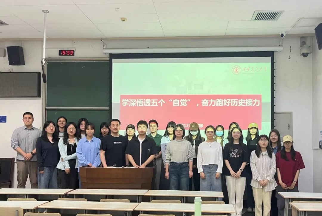 随后,王一宸、刘佳鑫、陈一嘉所在的党小组带来《学深悟透五个“自觉”,奋力跑好历史接力》的主题分享。他们结合当前的形势和任务,深入解读了五个“自觉”的深刻内涵,引导全体成员深刻理解和把握习近平新时代中国特色社会主义思想的核心要义。