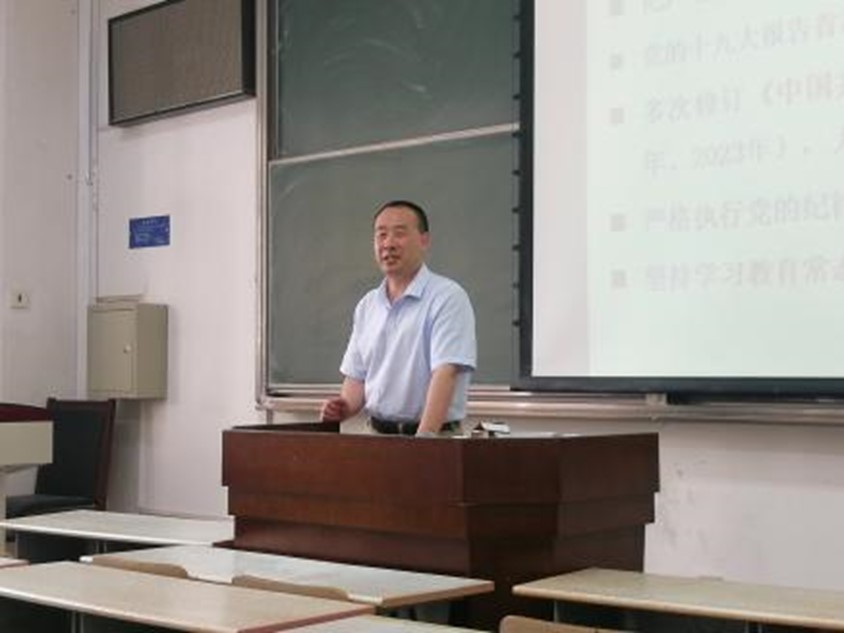 崇实书院师生联合党支部,于主B-105教室为支部党员讲授党纪学习教育主题党课。参会各支部党员认真聆听,积极参与讨论交流,反响热烈。