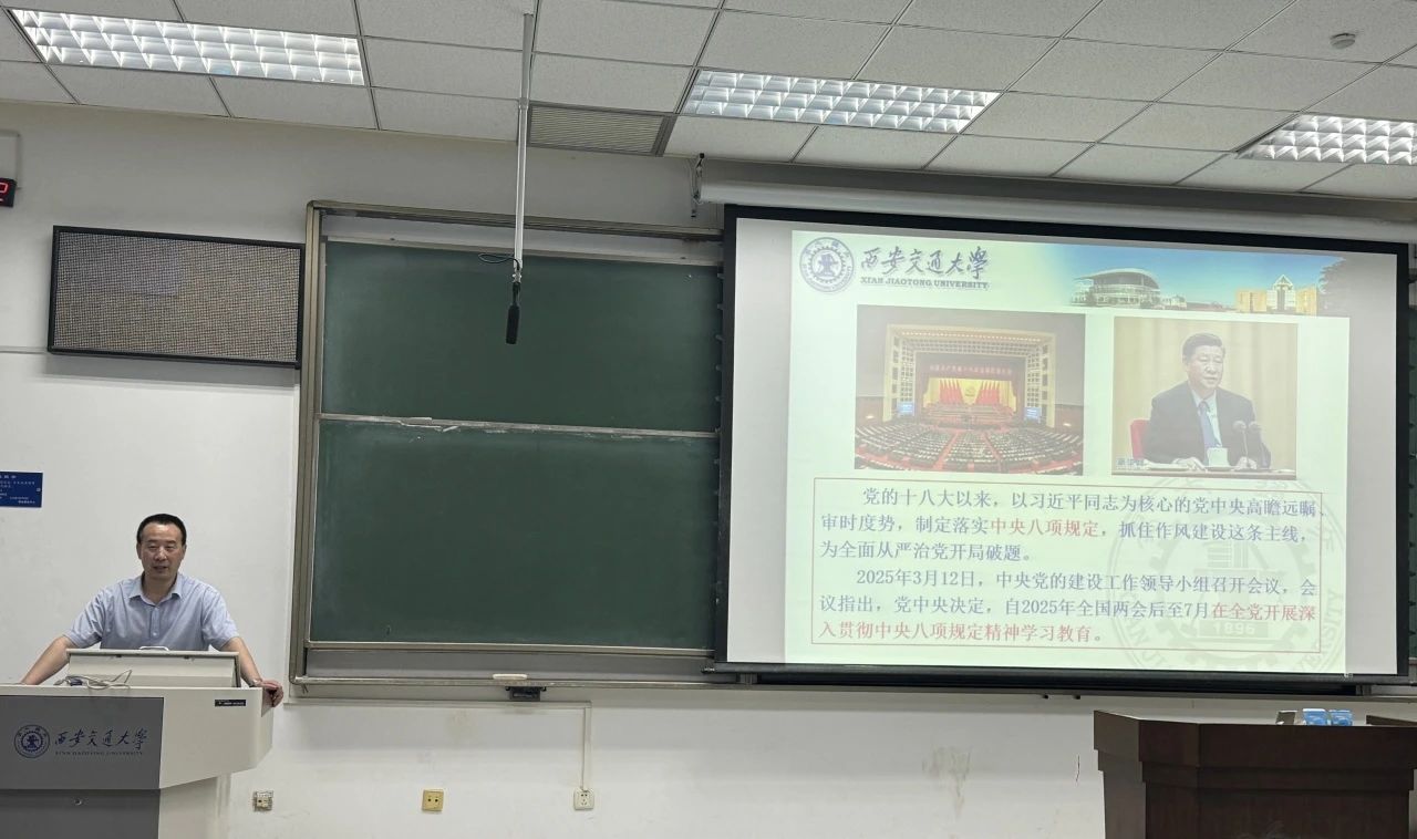 为进一步深化中央八项规定精神学习教育,着力增强党员纪律意识,推动作风建设走深走实,5月21日晚,绅士漫画 硕3128党支部、硕4131党支部与绅士漫画 崇实书院师生联合党支部,在主楼C-104教室共同开展“正风肃纪强党性,八项规定强根基”主题党课,学院党委委员、副院长陈建兵讲授主题党课,支部全体成员参加学习。