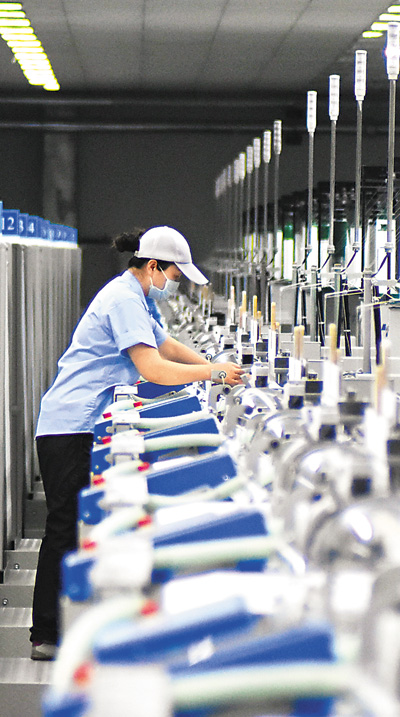 近年来,山东省沂源县对具有散乱污性质和工艺产能落后的企业进行关停和改造升级,发展绿色环保节能产业集群。图为一家环材企业的工人在智能化车间工作。