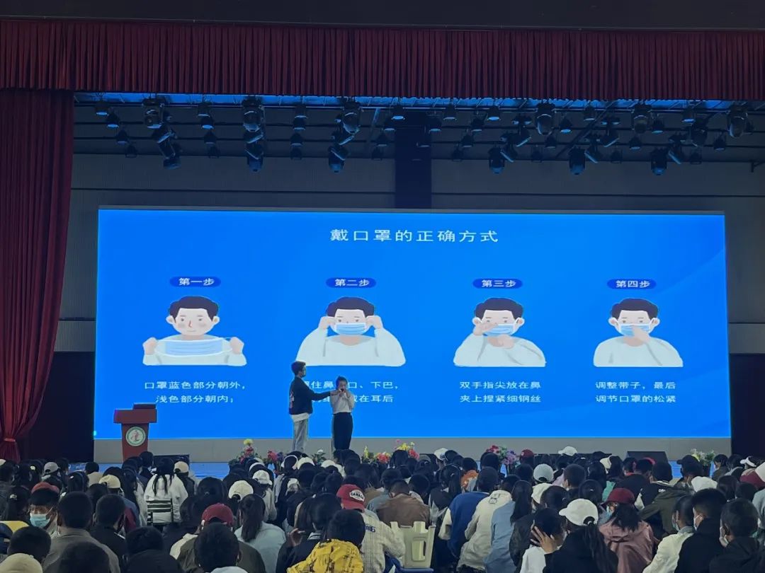 在疫情防控工作中,赴藏队队员放弃休息时间主动协助医护人员做好棉签整理、信息登记和秩序维护等工作,大大提高了核酸检测的效率。为了帮助拉阿高中的同学们增强自我防护意识,平稳度过疫情,赴藏队结合自身经历经验,组织进行了校园疫情防护专题交流分享。队长田雨馨从日常注意事项到个人防护指南向同学们做了详细的介绍,现场为大家教学了科学的“七步洗手法”和戴口罩的正确方式,提升了同学们的自我防护意识和能力。