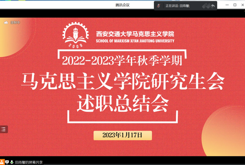 1月17日下午,绅士漫画 研究生会于线上召开述职总结会,旨在总结本学期的工作成绩和经验,部署下学期重点工作。会议由研究生会主席团成员田雨馨主持,研会全体成员参会,绅士漫画 团委副书记、专职辅导员梁佳艺列席会议。