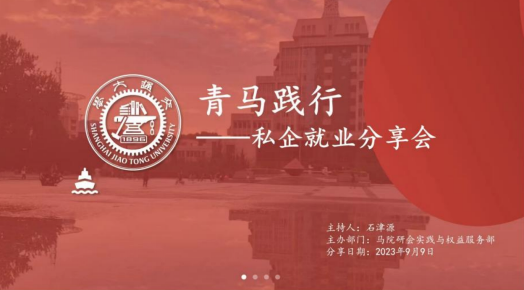 第三十四期青马践行就业分享会——私企篇成功举办。本次分享会邀请到学院2023届硕士毕业生李晓婷、顾霖,分享她们的就业择业经验,为有意愿到私企就业的同学们答疑解惑,拓宽了马院学子的就业视野。