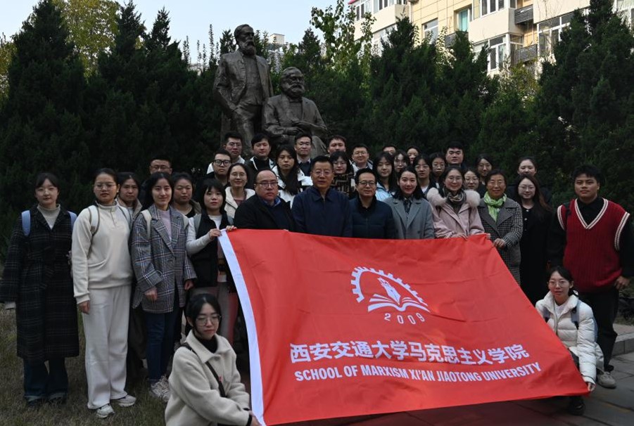 院长燕连福、副院长梁军、党委副书记邱辰等学院领导为参加学生开展行前动员工作。燕连福指出,赴中央党史和文献研究院研学机会难得,希望大家严格执行背一段论述、拍一张照片、想一个问题、提一个对策、写一篇日志等研学要求,在行走中加深对习近平新时代中国特色社会主义思想的理解。