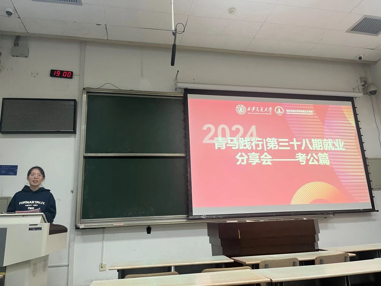 第三十八期青马践行就业分享会——考公篇成功举办。本次分享会邀请学院2021级硕士研究生王锟,分享他的“考公”经历,为有意向考公的同学答疑解惑,增强同学们的求职信心。