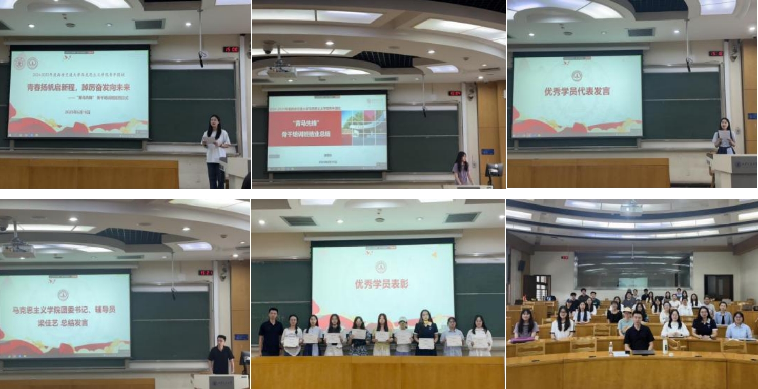 2025年6月10日,培训班结业仪式在兴庆校区主楼A-103教室举行。团组织建设指导中心(团校)主任姜雯欣对本年度团校的开展情况进行了系统回顾与总结。综合考评研学实践、读书笔记、微团课宣讲等多项学习成果,团校对10名表现优异的学员进行表彰,其中优秀学员代表路思远用多个“首次”分享了自己在团校学习中深刻感悟。学院团委书记、辅导员梁佳艺为10名优秀学员颁奖,并对团校在思想淬炼、技能精进、实践锻炼等方面的重要作用予以高度肯定,鼓励青马学子永葆笃实躬行的治学品格,坚守成长初心,努力开拓进取。