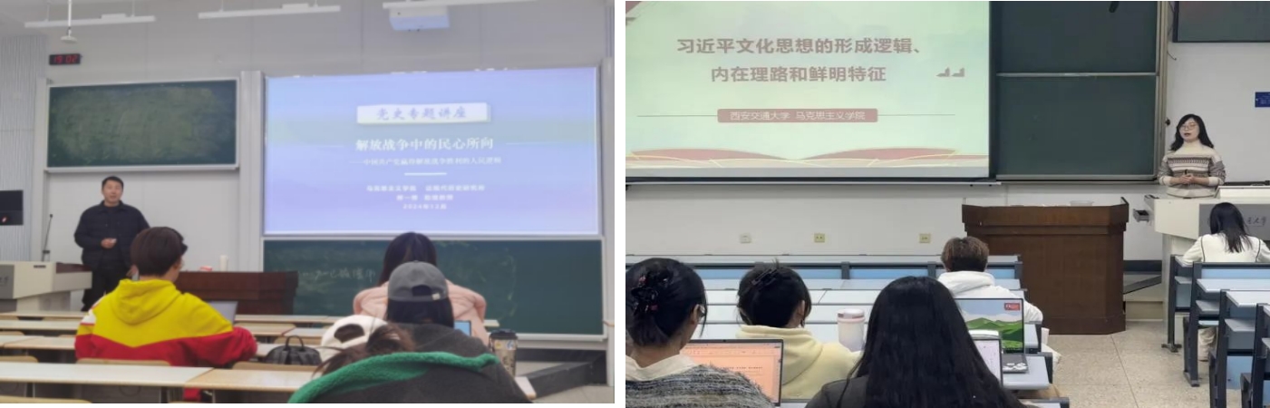 为夯实学员理论根基,提升政治素养,团校邀请学院曹芳副教授和郝一博助理教授分别为学员开展“习近平文化思想”与“党史团史”专题讲座。曹芳系统阐释了习近平文化思想的形成逻辑、内在理路和鲜明特征,助力学员在深学细悟中凝聚思想共识,增强文化自信。郝一博剖析了中国共产党赢得战争胜利的人民逻辑,带领学员在红色历史中感悟磅礴伟力,汲取奋进力量。两场讲座以文化自信为帆、以历史责任为桨,激励学员在今后的生活中筑牢信仰之基、补足精神之钙、把稳思想之舵。