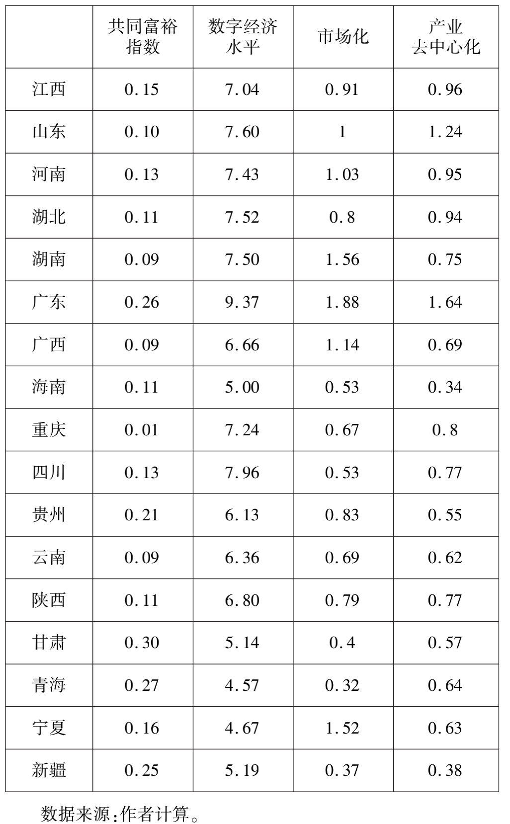 数字经济对共同富裕的直接影响为市场一体化效应。从国内市场角度看,数字经济通过减少市场分割促进市场一体化促进共同富裕。随着中国市场经济的发展,地区之间的分割程度不断降低,区域间经济发展差距扩大而使得区域之间的沟壑部分加大。部分研究表明,改革开放后的中国区域间市场分割程度比以前更大(李善同,2016)[29]。在很多方面,还存在较大程度的市场分割效应,特别是经济发展程度不高的地区,由于竞争效应,对地方政府还存在一定的市场保护政策,限制了国内地区间产业分工的发展,另外对于资源密集的地区,产业结构升级的难度还非常大,形成“资源诅咒”,以前信息不发达,存在较大的信息差,区域内的企业和个体从业者也难以获取足够的市场信息,因而只在封闭区域内竞争。但是随着数字技术的发展,区域产业化可以更加分散,数据和信息可以跨区域流动,产业链在区域内的聚集程度出现下降,产业链开始变得更短,更加分散。特别是数字平台的发展,为产品经营者和消费者之间进行准确匹配。中国地域广阔,不同地域之间的产业结构存在较大的差异。东部沿海地区已经完成了工业化,第二产业占据主导地位,主要面向出口市场。中西部地区虽然地域辽阔,但工业化进程不足,部分地区还以第一产业为主。对于第一产业来说,特别是传统农产品存在市场范围狭小,物流交通不便等制约因素,数字经济的快速发展,使得农产品可以在全国范围内自由流通,为农业生产者减少了信息不对称的问题,增强了生产者信息整合和协作的能力,降低整体经济活动的交易成本、物流成本、技术成本、广告营销成本等,从而提升农业生产者的市场空间,促进农民收入的提升,降低收入差距。
