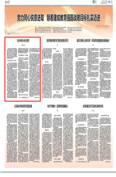 “扎根中国大地办教育”是发展中国特色社会主义教育事业的根本遵循,核心要义在于立足国情、面向未来,以自信自强的姿态走出一条彰显中国特色的教育现代化之路。习近平总书记指出,“我们要认真吸收世界上先进的办学治学经验,更要遵循教育规律,扎根中国大地办大学。”这一重要论述揭示了中国特色社会主义教育发展的实践逻辑,对加快建设教育强国具有至关重要的意义。